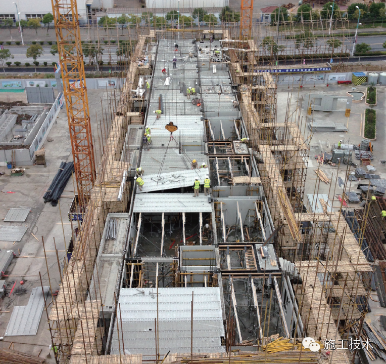 由于项目施工现场工人的专业素质不高,技艺水平等各方面有待培训和提高才能适应工业化建筑施工。在这个过程中,如果仅通过编制相关的文字资料,可能达不到较好的培训效果。最有效的方式是通过三维图形、动画直接展示,使施工方尤其是操作人员一目了然。突出施工指导非常重要,只有工人保质保量完成任务,施工质量和进度才能得到根本保证。工业化建筑现场施工如下图所示。